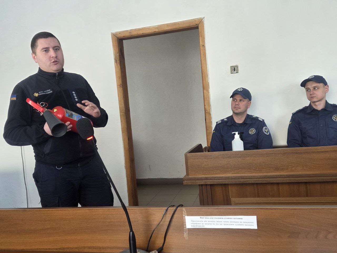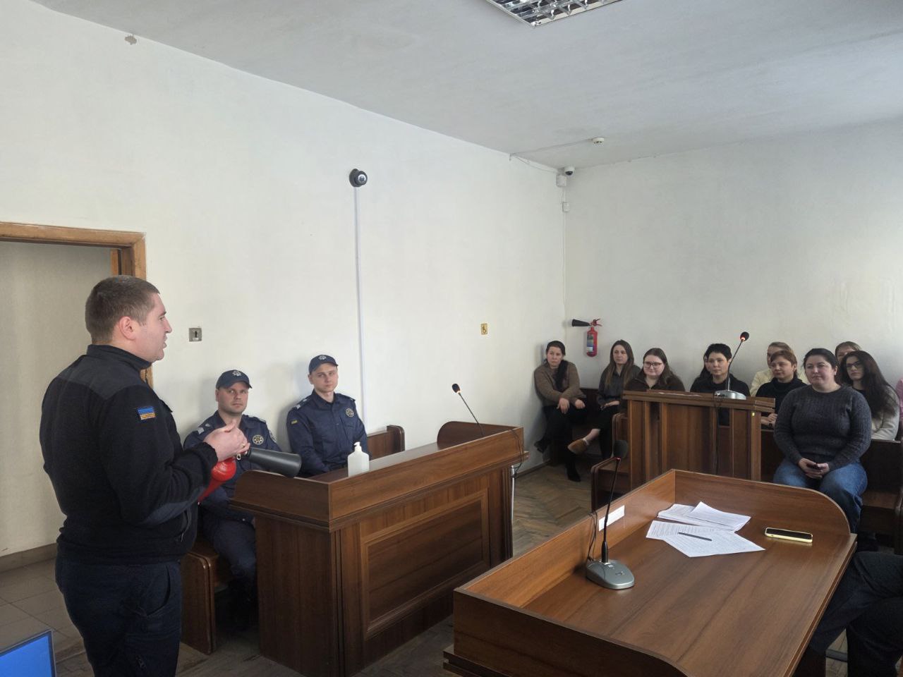 Під час теоретичної частини фахівці ДСНС розповіли про заходи пожежної безпеки як під час здійснення службової діяльності, так і в побуті, ознайомили з алгоритмом дій у разі виникнення пожежі та інших надзвичайних ситуацій, за яким номером телефонувати та детально розповіли як користуватися вогнегасником тощо.